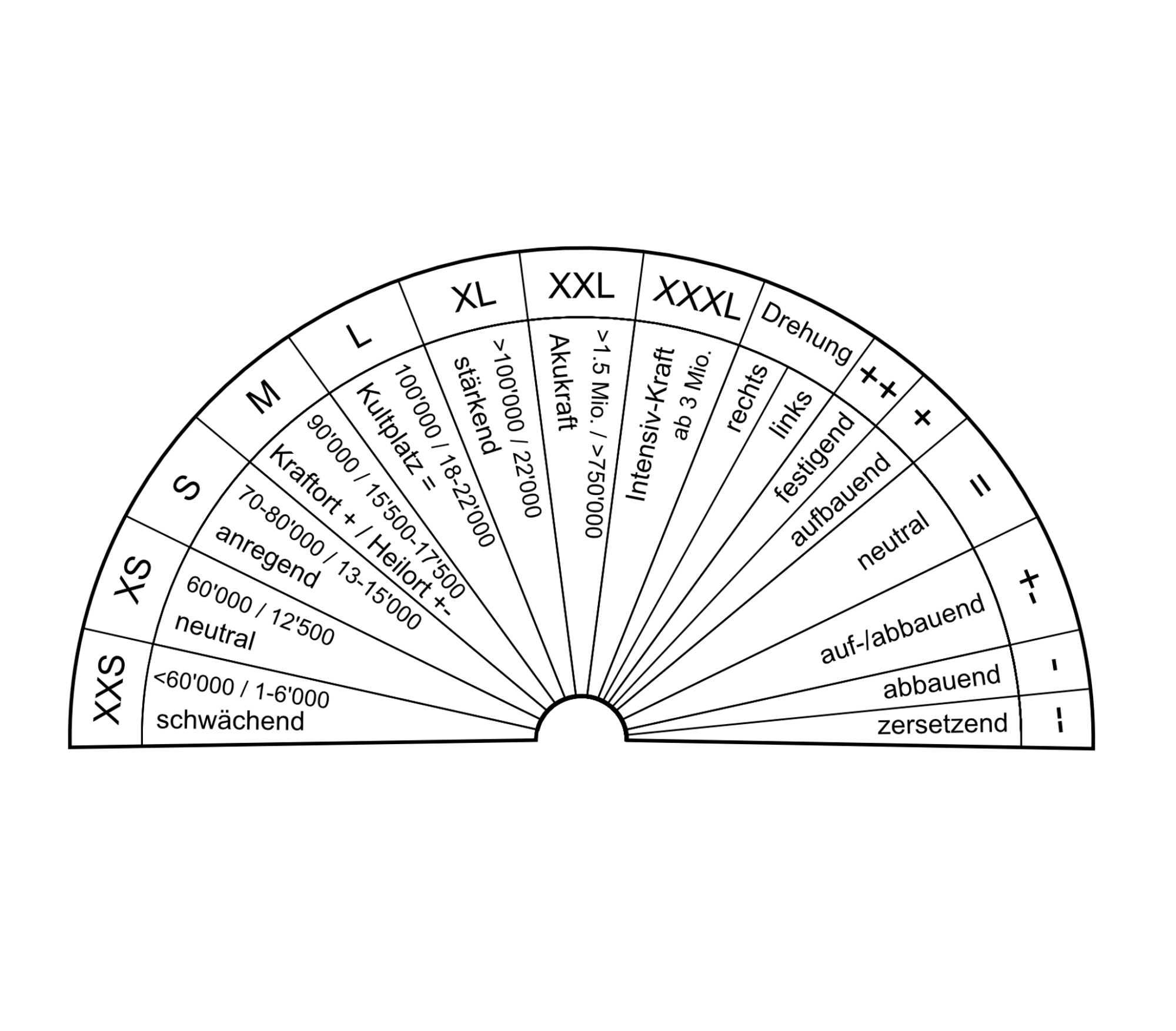AF: Im letzten Jahrhundert schuf der französische Physiker Alfred Bovis (1871-1947) die bekannte Bovistabelle. Die Boviseinheiten sind reine Test-Einheiten, die Naturkraft kann noch nicht gemessen werden. Die Methode ist nicht wissenschaftlich, sie ergibt derzeit jedoch die einzigen Hinweise auf die Stärke der Kraft. Da sich die Kraftintensität in den letzten Jahren sprunghaft erhöht hat, entwickelte die Forschungsstelle eine angepasste Bovistabelle. Sie weist breite Kraftsektoren auf, gibt diese mit Buchstaben, statt mit Zahlen an und beinhaltet auch die qualitativen Aspekte der Kraft. Heute genügt es nicht mehr, lediglich die Kraftstärke zu testen, die Kraftqualität entscheidet über die Art der Kraft.